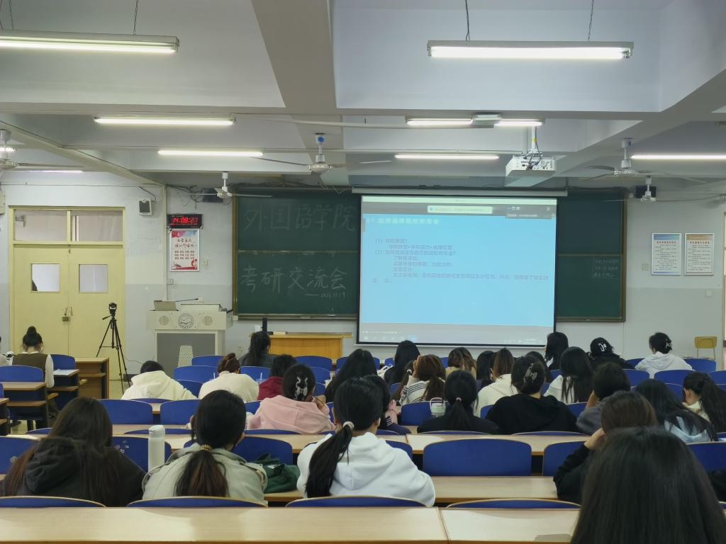 10月19日下午14点,M88官方网站英语教学部在综合楼212举办了2023年考研经验交流会,旨在帮助员工了解研究生入学考试备考的过程。与会人员为英语专业2021和2022级员工。