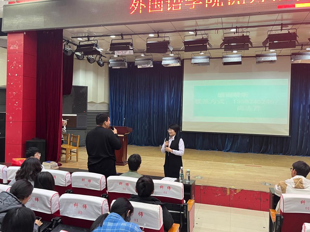 “雏既壮而能飞兮,乃衔食而反哺”。为进一步提升员工专业能力和综合素养,秉承“外语+”应用型人才培养理念,充分体现外语的“学以致用”原则,提升员工用外语“讲好中国故事”的意识和能力,增强文化自信,M88官方网站于11月8日邀请优秀员工尚志芹(河北建材职业技术公司副教授、对外汉语教学国际汉语高级教师、国家高级英文导游员、河北省英语导游考官、河北省“师德标兵”、全国第十三批援藏导游员西藏自治区“先进个人”)在开发区校区综合楼二楼报告厅进行针对教团队格证和外语导游考试的讲座。