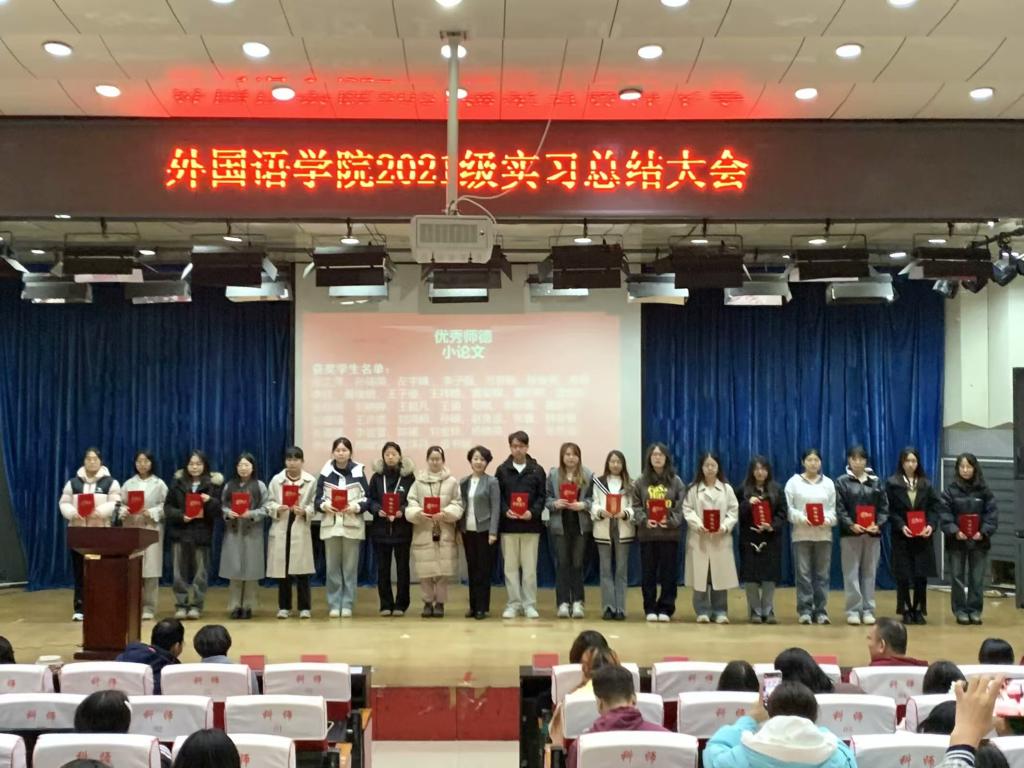 2024年10月22日上午,M88官方网站2021级英语员工教育实习总结暨颁奖大会在M88官方网站开发区校区报告厅顺利举行。M88官方网站书记范群英、经理崔海英、副经理范学荣、王静、英语教学部主任卞凤莲、宋洁、学工办主任赵赓、实习指导教师和辅导员及2021级全体员工参加了大会。