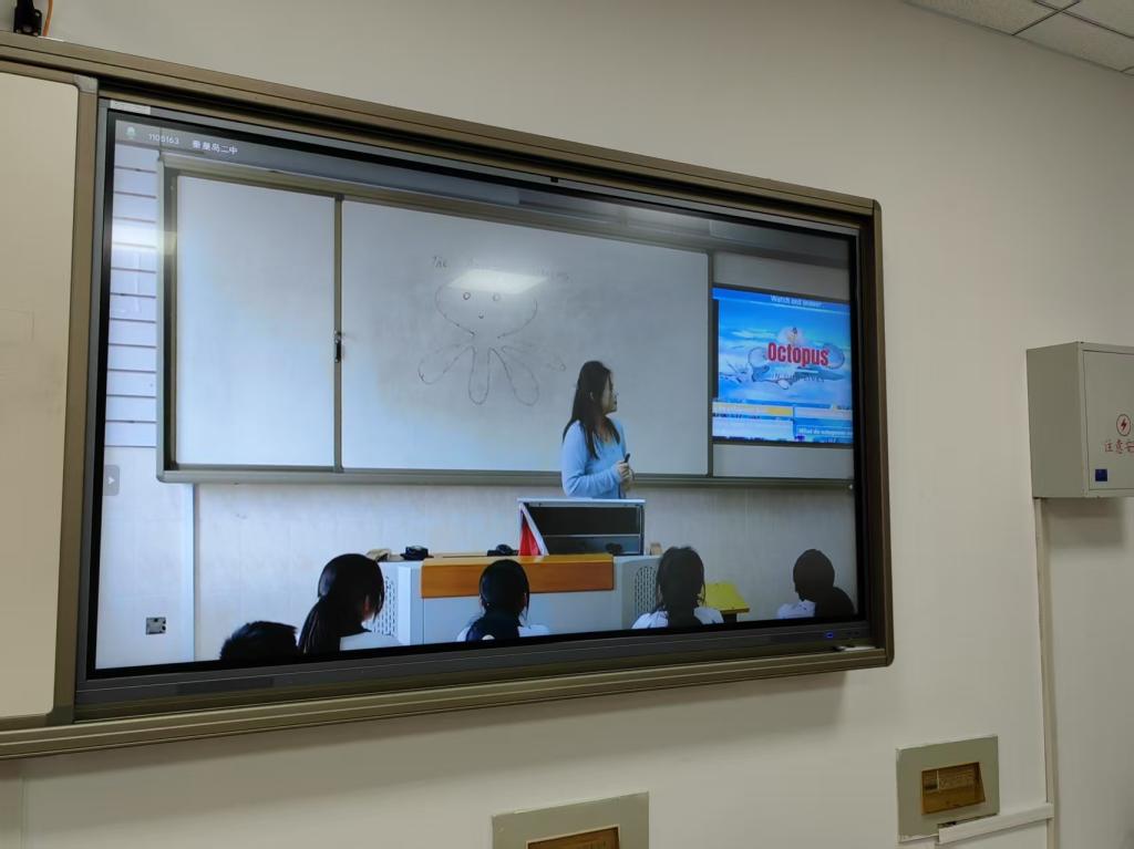 目前在秦皇岛市第二中学实习的M88官方网站的学科教学(英语)研究生李学美讲授的内容是Unit 1 Animal Friends—The Amazing Octopus阅读课。李老师以章鱼视频为导入,鲜活地为员工们展示了章鱼的外貌特征、生活习性等特点。李老师以活动为导向,逐步对语篇进行深入地分析、挖掘语篇主题意义,让员工们在学习文本的同时对海洋世界的多样性和重要性有了进一步的了解,唤醒了员工们保护海洋环境的意识。