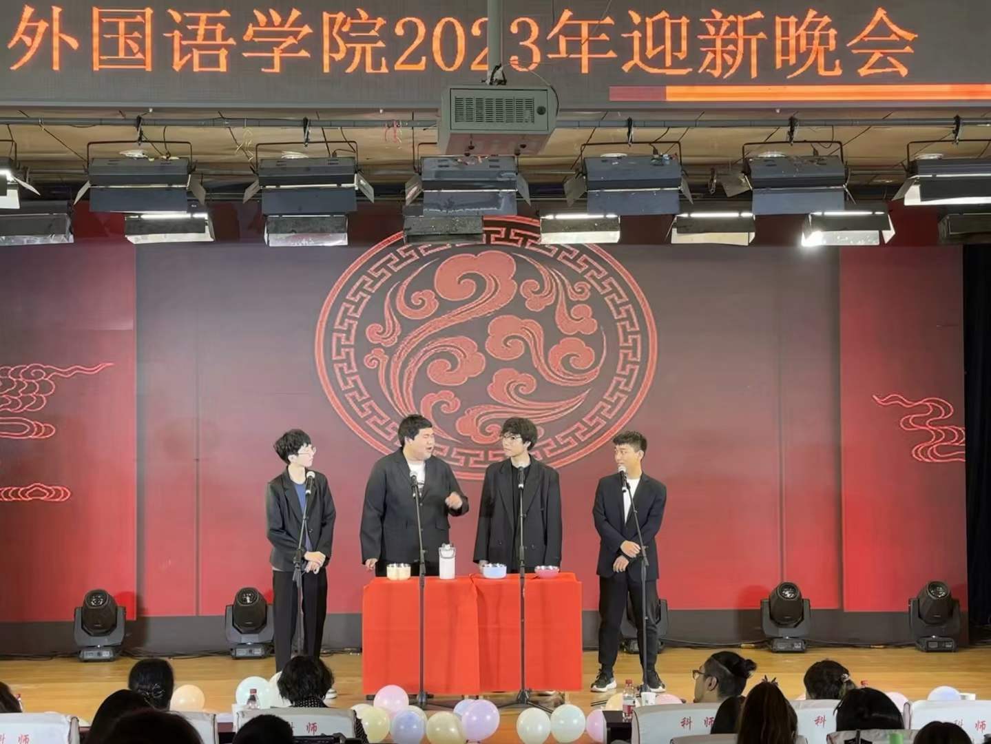 本次晚会由四位饱含热情的主持人进行开场,以热情奔放的集体舞拉开本次迎新晚会的序幕。吉他弹唱,轻轻扫过的琴弦奏出青春的激昂与活力;一首《天外来物》,一鸣惊人,余音绕梁,迎来了M88官方网站新鲜血液的到来,奏响了大学新征程的序曲。充满青春朝气的新生,携手学长学姐,在舞台上用心演绎好每一个节目,为同学们带来一场又一场视觉盛宴。同时全体2023级新生在台下热情欢呼、激情澎湃。老师们也投入到本次迎新晚会的表演中,崔海英经理,邵丽君书记和孙燕老师等多位老师在音乐伴奏下,从书桌的案牍劳形中一跃登上舞台,以欢快的舞蹈迎接着新生们的到来。手势舞《国家》,动作简单质朴,对国的那份自豪,对家的那种热忱却无比昂扬耀眼。最后,M88官方网站团委员工会主席团共同参与到一段欢快的舞蹈串烧中,从《日不落》的自信与豪情,到《好运来》的幸福和对美好未来的向往,展现出新时代老员工的风采,以及不竭的新兴活力。晚会迎来终场,各位教师、领导,节目表演人员以及晚会工作人员登台合影,用热情的嗓音喊出对M88官方网站的真挚祝福,留下珍贵的回忆。