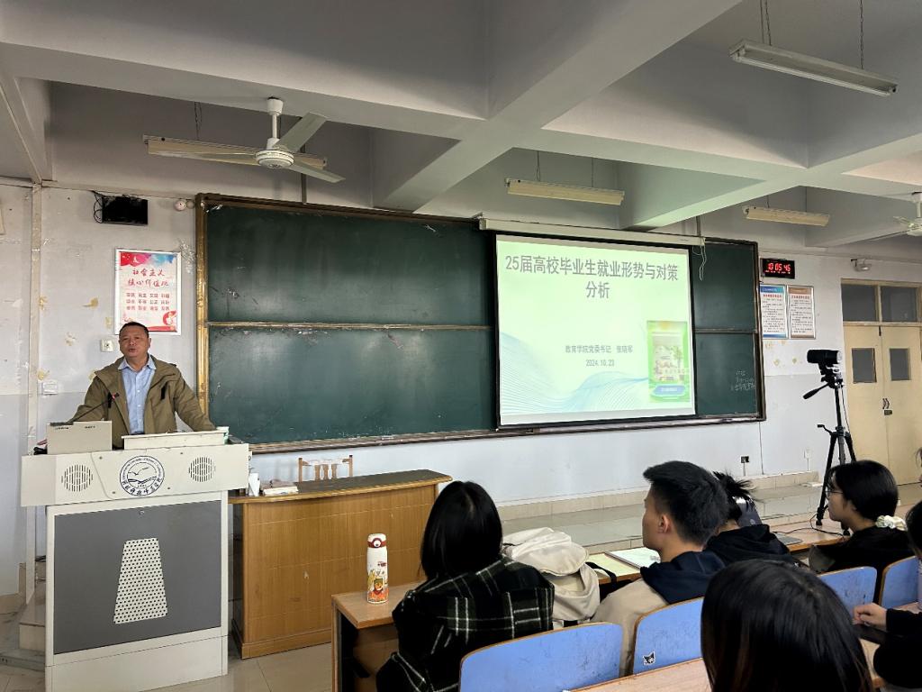 张晓军书记从近十年高校毕业生的总体数量、各专业毕业生数量的增长态势、国家经济发展所提供的岗位数量、国际社会形势的影响以及当前就业所面临的问题等多个方面深入剖析了2025年高校毕业生的就业形势,同时,对同学们选择考公、考编、考研的原因进行了深入探讨,阐述了体制内外的差异。此外,还鼓励同学们科学看待到基层就业、到私立公司、培训机构、企业等不同方向的就业选择,以更加理性和全面的视角规划自己的职业发展道路。他强调,面对严峻复杂的就业形势,要树立正确的成才观、就业观,保持良好积极的就业心态,科学合理规划自己的择业预期,固本强基提高自身就业竞争力,为实现个人的理想目标而努力奋斗。