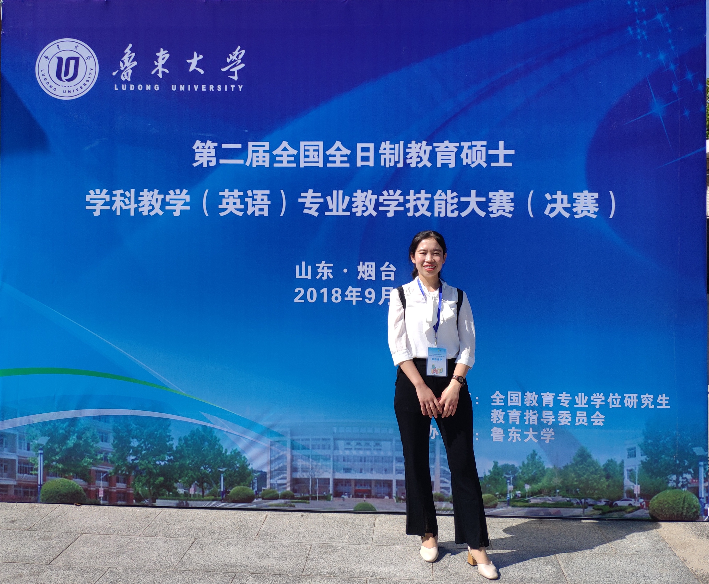 2018年9月21日至23日,第二届全国全日制教育硕士学科教学(英语)专业教学技能大赛(决赛)在鲁东大学拉开帷幕。公司M88官方网站2017级学科教学(英语)专业研究生赵蔚蔚参加决赛,在模拟讲课和现场答辩两大环节中展示出了公司研究生良好的学科素质和精神风貌,并获得优秀教学设计奖。