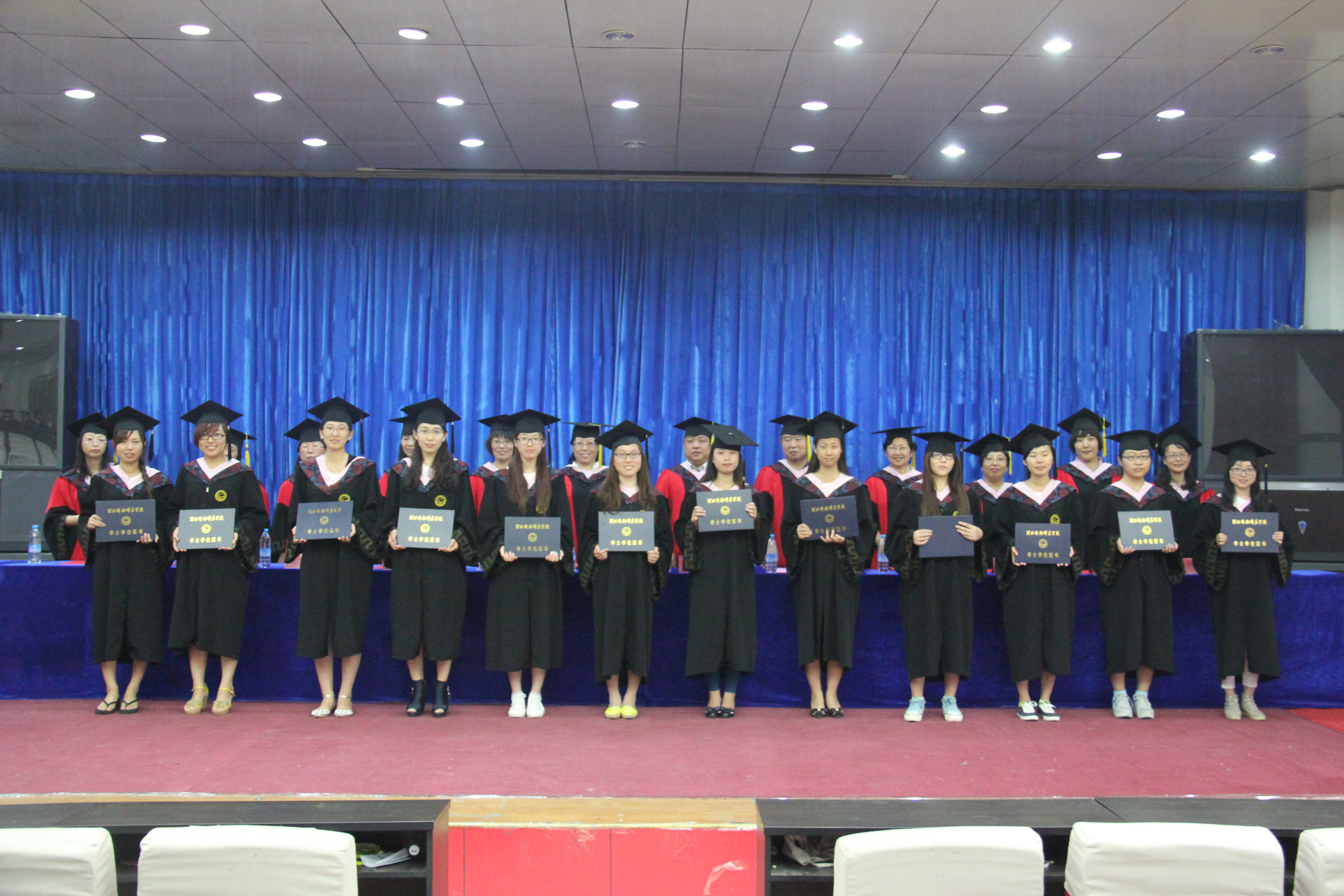 毕业典礼之后,公司举行2014届本科毕业生学位授予仪式。首先崔海英教授宣读学位评定委员会主席的委托词,之后,M88官方网站经理邵丽君教授宣读授予学位的决议和名单,最后由各位导师为M88官方网站126名获得学士学位的毕业生颁发学位证书。