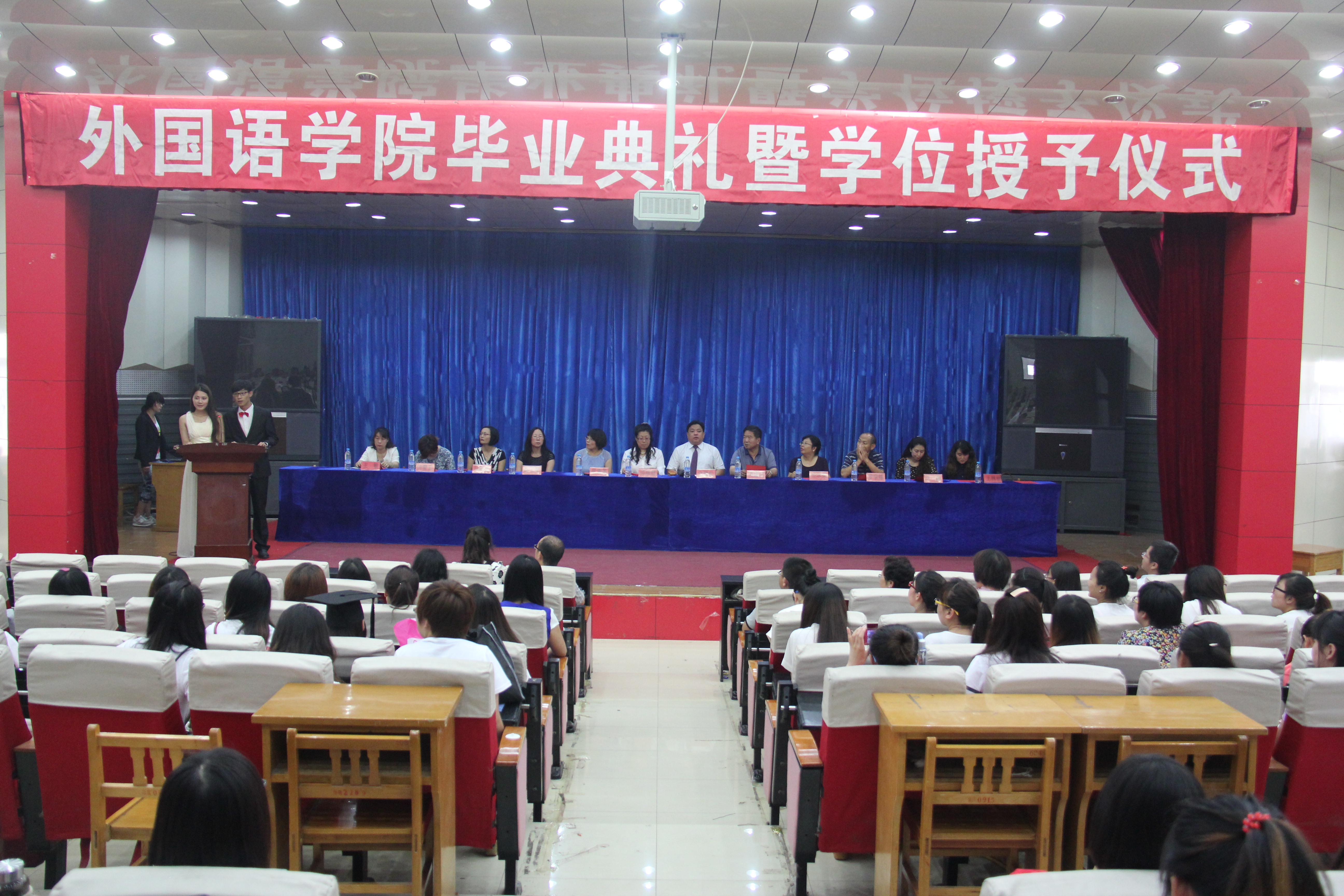 典礼上,邵丽君经理致开幕词并介绍了2014届毕业生的基本情况,对本届毕业生中考取研究生、公务员和选调生以及专接本上线情况进行了简单介绍,并对大家顺利毕业表示了衷心的祝贺。游建民副经理和崔海英副经理分别宣读获得2014届省级优秀毕业生的名单和2014届考取研究生和公务员的员工名单,并进行了隆重而热烈的表彰。之后,公司办公室主任李聪文老师代表全院教师和辅导员发言,回顾美好的大学时光,鼓励大家终身学习,勿忘母校,真情道出M88官方网站永远是大家的温馨家园。2010级意大利语李梦涵同学和2012级英语本科专业张亚微同学分别代表全体毕业生和在校生发言;最后,白雪松书记在典礼上作了激情洋溢的讲话。他充分肯定了毕业生们为公司发展所作的成绩,对即将毕业的同学们提出了殷切的希望和衷心的祝福。