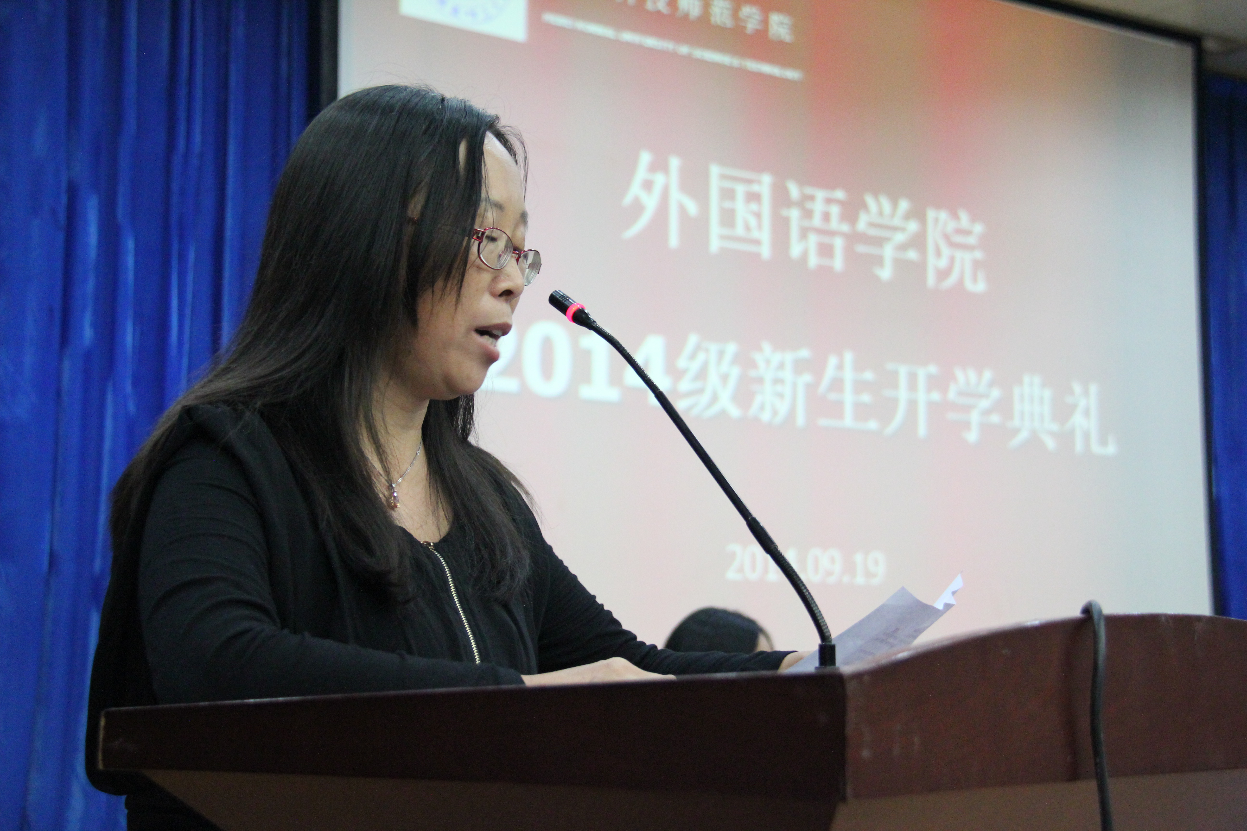 首先,公司经理邵丽君老师为开学典礼致开幕词,她对新生表示衷心的祝贺和热烈的欢迎,并简要介绍了公司的概况及往届员工所取得的优秀成绩,并对2014级新生在公司未来的发展提出了深切的希望。清华大学英语语言学博士,副教授赵玉荣老师代表全体教师对新生表达祝贺,对新生大学学习生活给予殷切的希望。老生代表野海清同学和师弟师妹们分享了大学的生活经验。新生代表2014级英语01班王汝鑫同学代表全体新生畅谈了自己对大学的憧憬和梦想。之后,M88官方网站各教学部主任及专业教师代表分别用英语、日语、意大利语、俄语、法语等专业语言以向新生致以祝愿,形式新颖,赢得新生的阵阵掌声。最后,外国语公司党委书记白雪松老师用质朴的语言表达了对新生最热切的欢迎和希望,他要求同学们科学规划人生,加强知识储备;加强个人修养,增强事业心和责任感;常怀感恩之心,用知识和学识去回报社会;要努力奋斗,勇于创新创造,并强调“今天你以公司为骄傲,明天公司以你而自豪”。