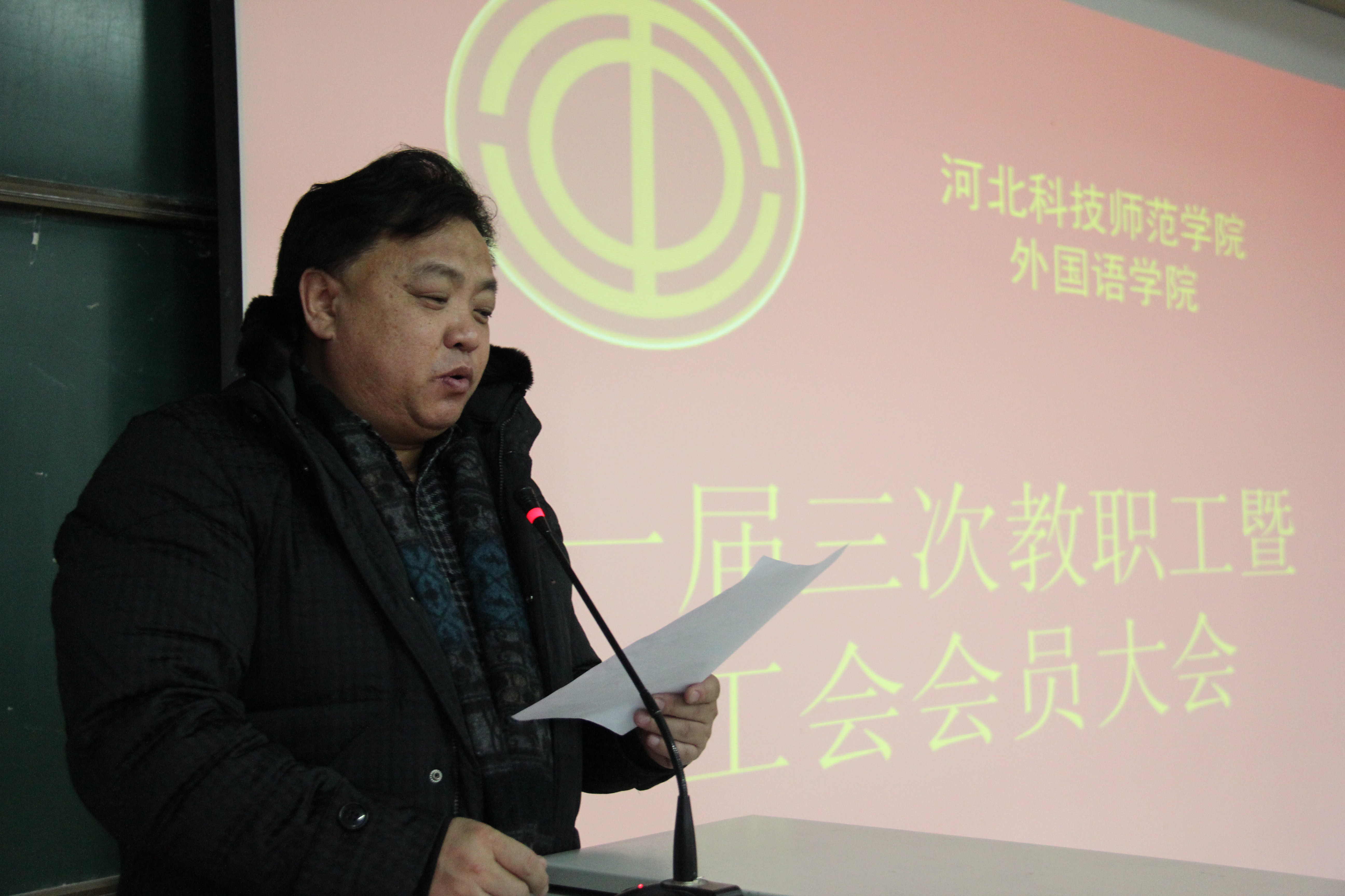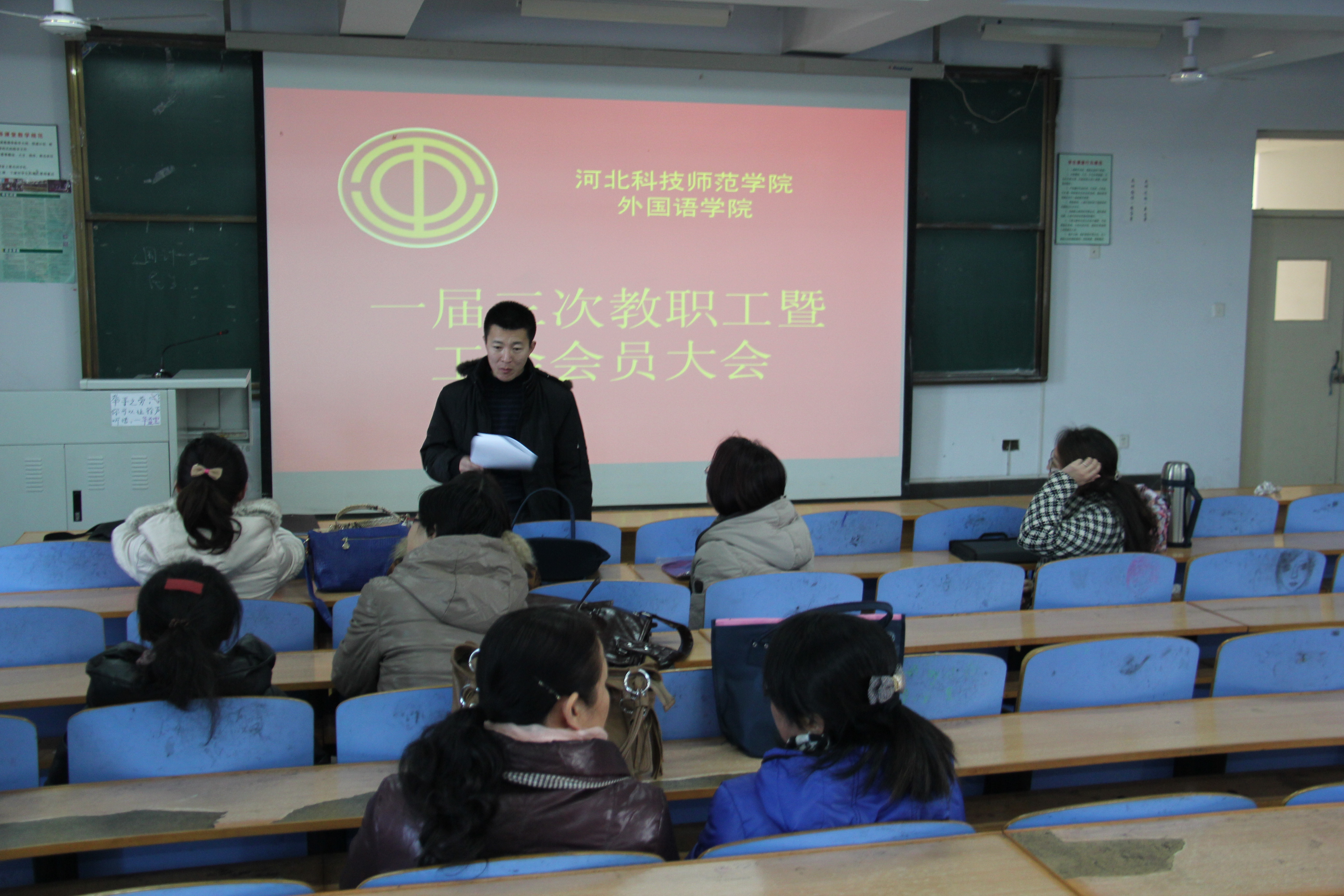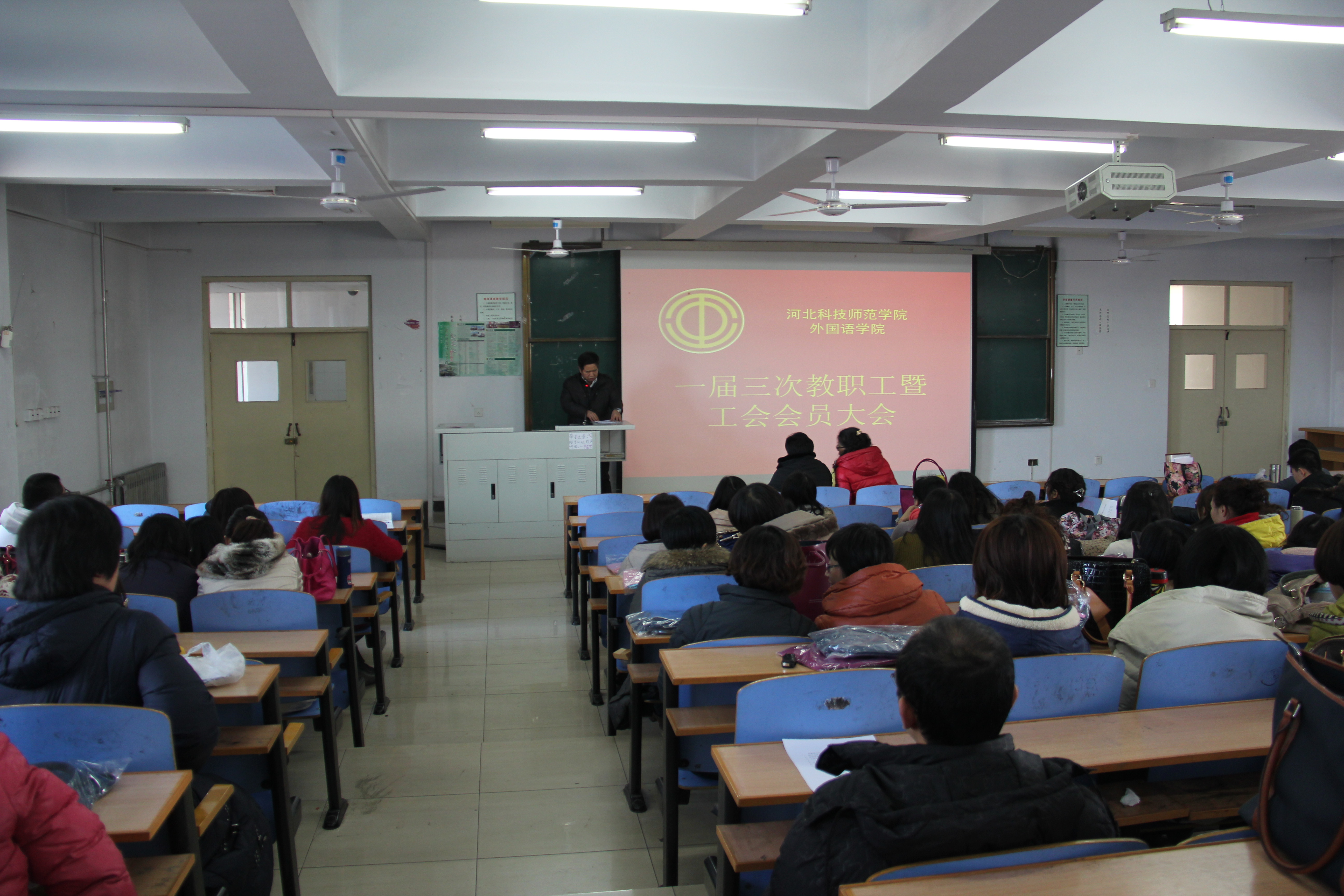 2013年12月26日下午2点,M88官方网站在开发区校区综合楼312室召开一届三次教职工暨工会会员大会。M88官方网站全体教职工参加了大会。