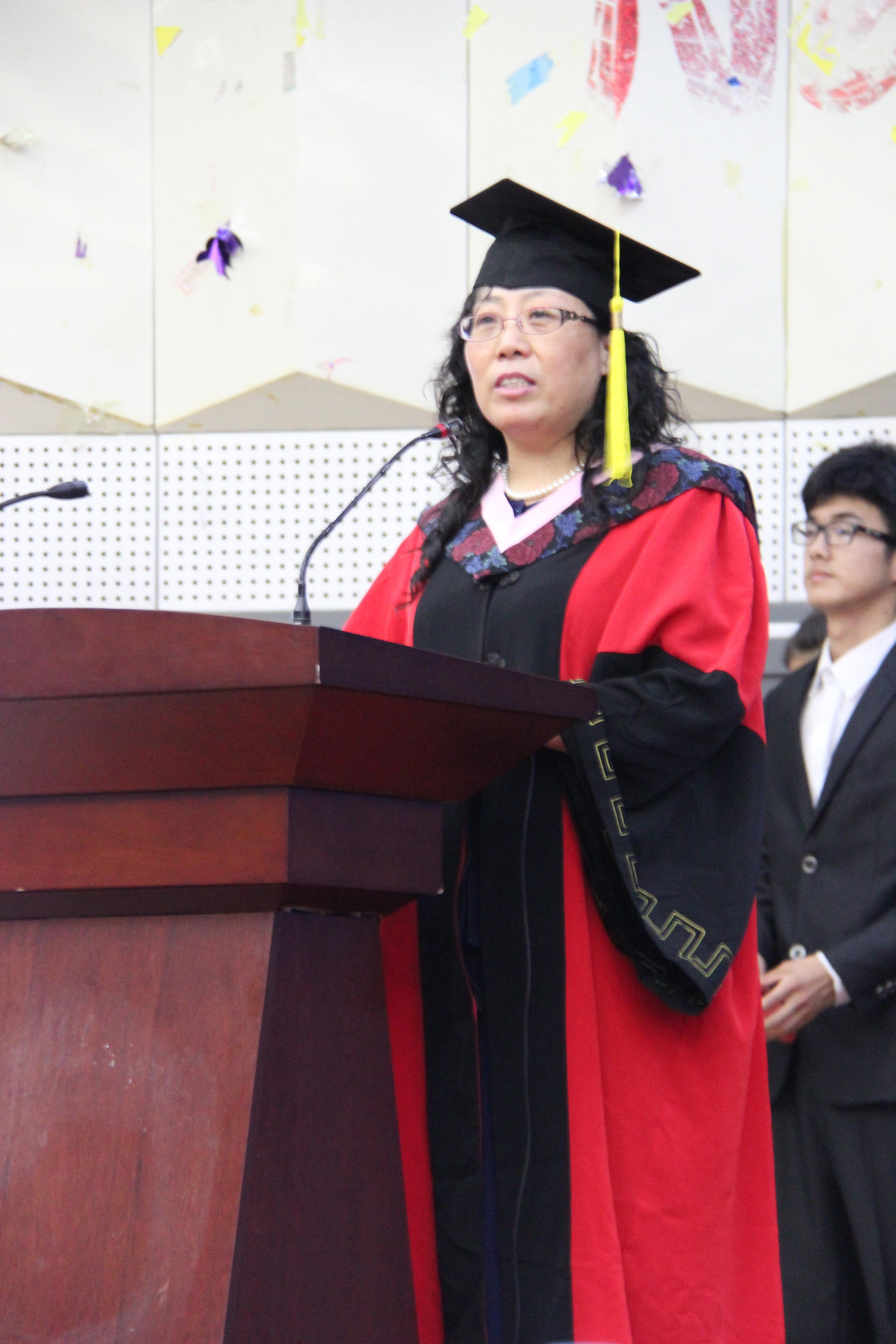 典礼上,邵丽君经理致开幕词,介绍了2013届毕业生的基本情况,并对本届毕业生中考取研究生、参加西部计划以及专接本上线情况进行了简单介绍。旅游英语教学部主任罗学峰老师代表全院教师发言,鼓励大家学无止境,终身学习。2010级旅游英语专科专业员工吴立川同学和2011级英语本科专业郝小乐同学分别代表全体毕业生和在校生发言;之后,白雪松书记在典礼上作了激情洋溢的讲话。他充分肯定了毕业生们为公司发展所作的成绩,对即将毕业的同学们提出了殷切的希望和衷心的祝福。