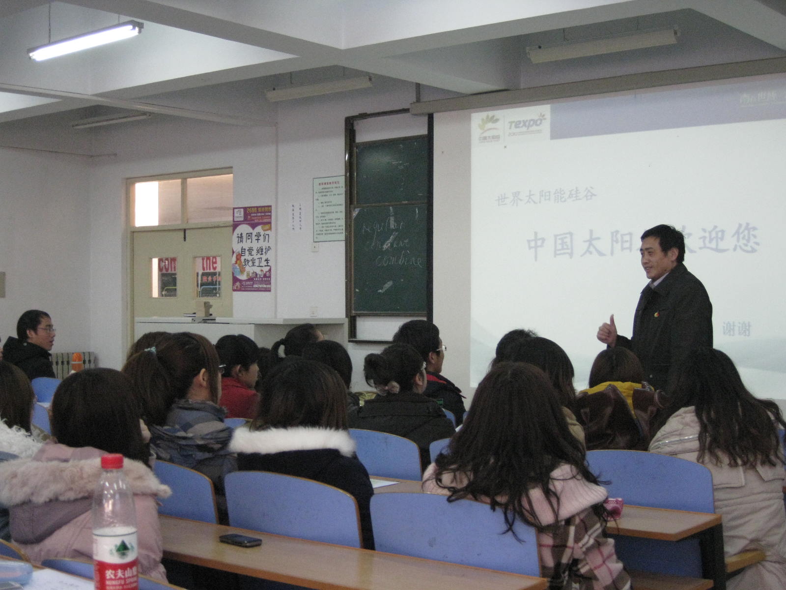 首先,皇明太阳能股份公司的招聘代表佟女士为毕业生播放皇明太阳能“太阳谷”的宣传片,之后将皇明太阳能股份有限公司的公司规模、产品研发、产业布局、发展前景、招聘岗位、基本待遇等情况向毕业生做了较为详细的讲解,并诚挚的邀请M88官方网站的员工加入皇明,同时也欢迎大家有机会去皇明公司参观考察和实习。讲解后,刘朝晖书记代表公司欢迎皇明太阳能股份有限公司佟女士一行,并谈到自己去皇明公司考察的经历,要求全体毕业生转变观念,面向市场。通过对行业和企业的分析,鼓励大家去皇明太阳能实习就业。