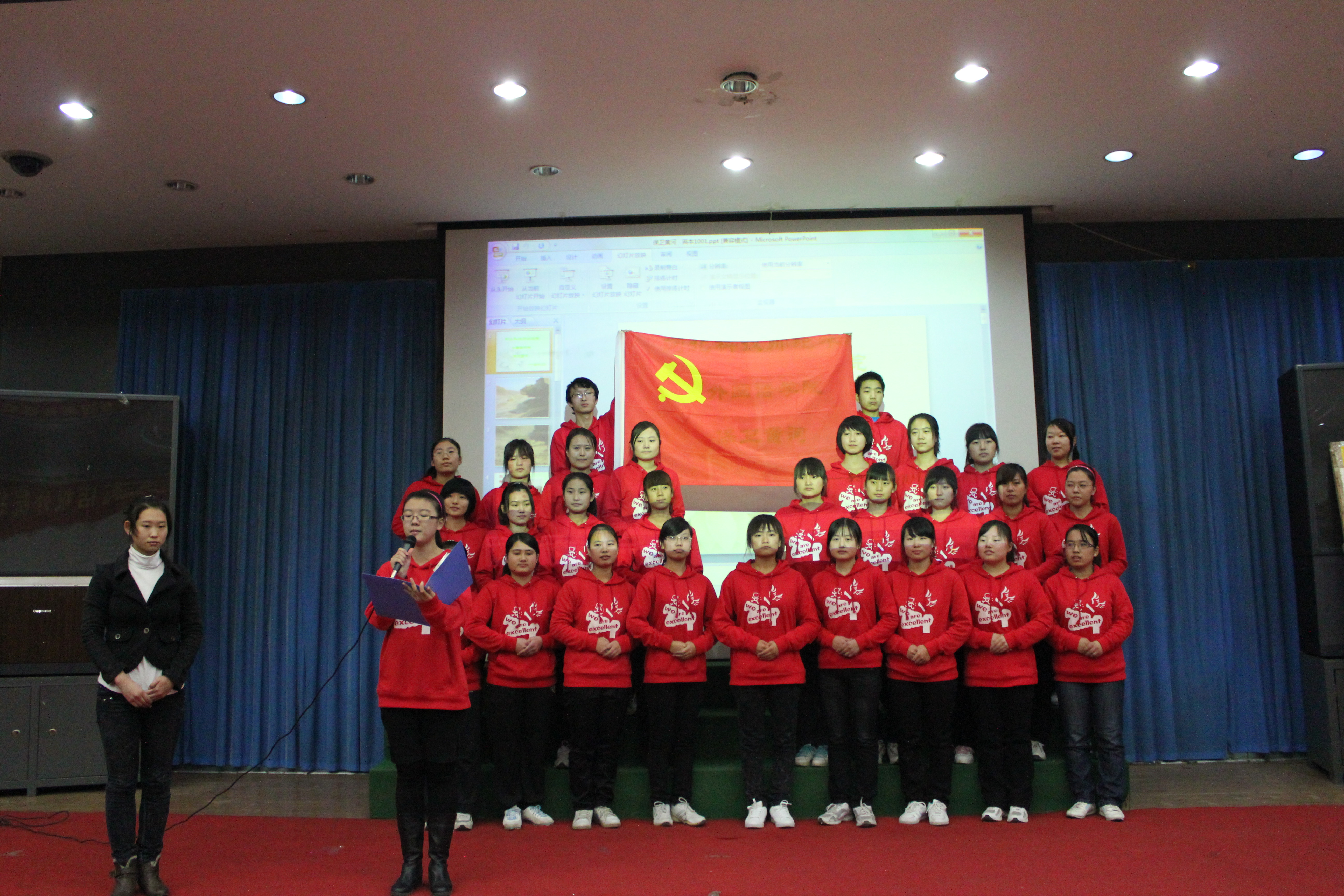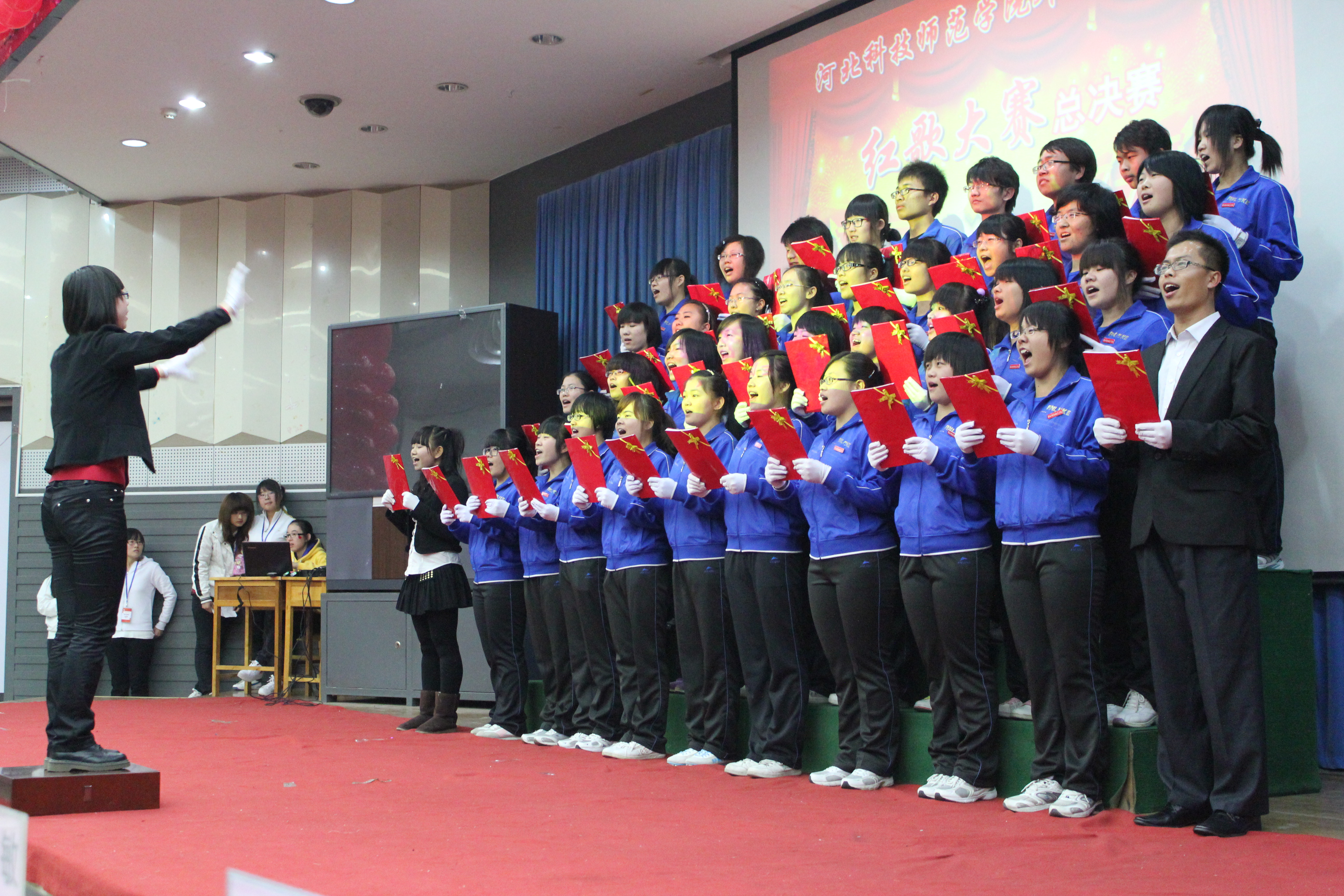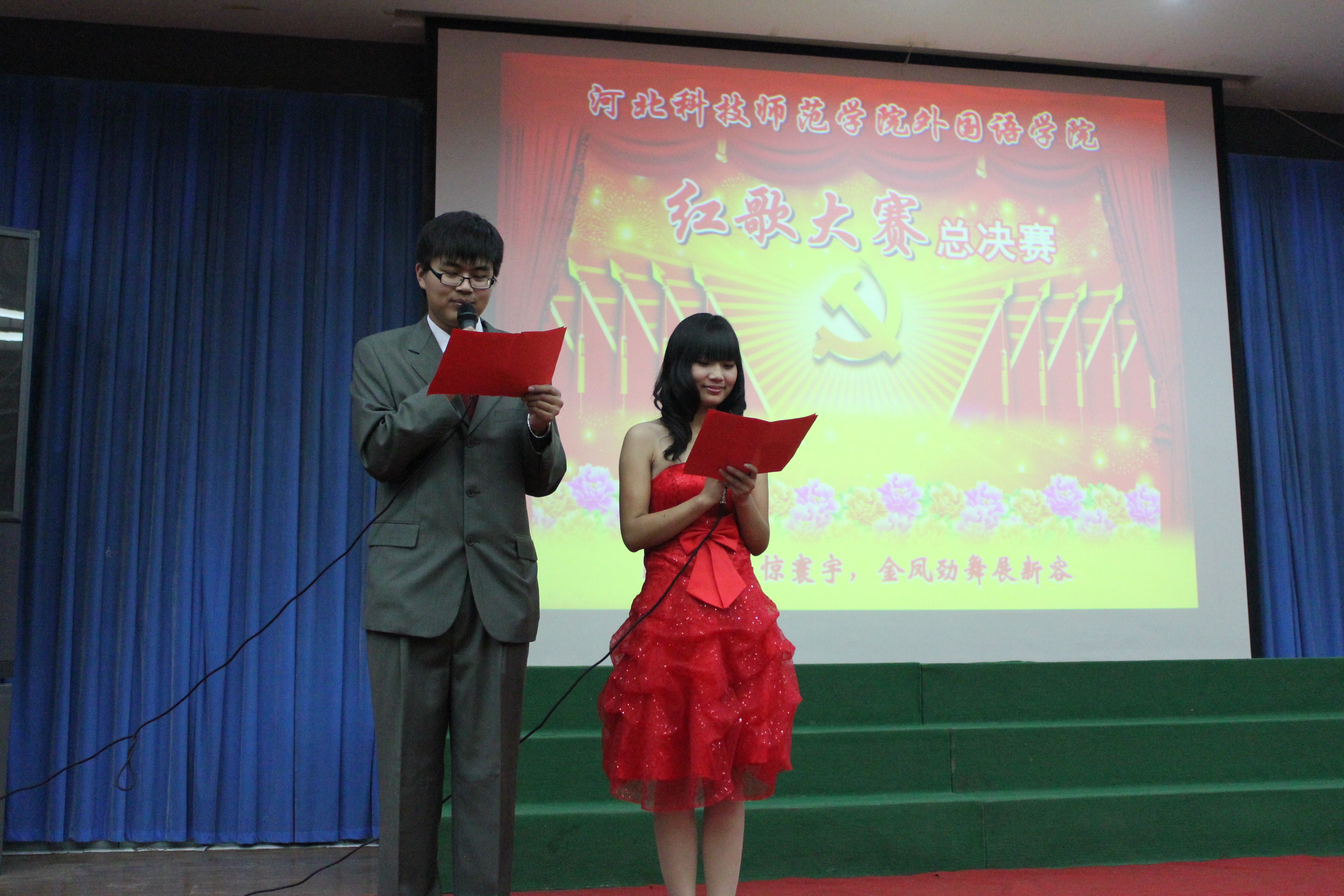 为了回顾过去,缅怀先烈,谨记中华民族的光荣历史,M88官方网站于2011年11月22日在综合楼报告厅开展了以“唱红歌,颂祖国”为主题的红色经典歌曲大合唱比赛的决赛。经过初赛的比拼,有13个班级进入了决赛。担任本次比赛的评委有游建民副经理、崔海英副经理,以及办公室、学工办和各教学部的老师们。