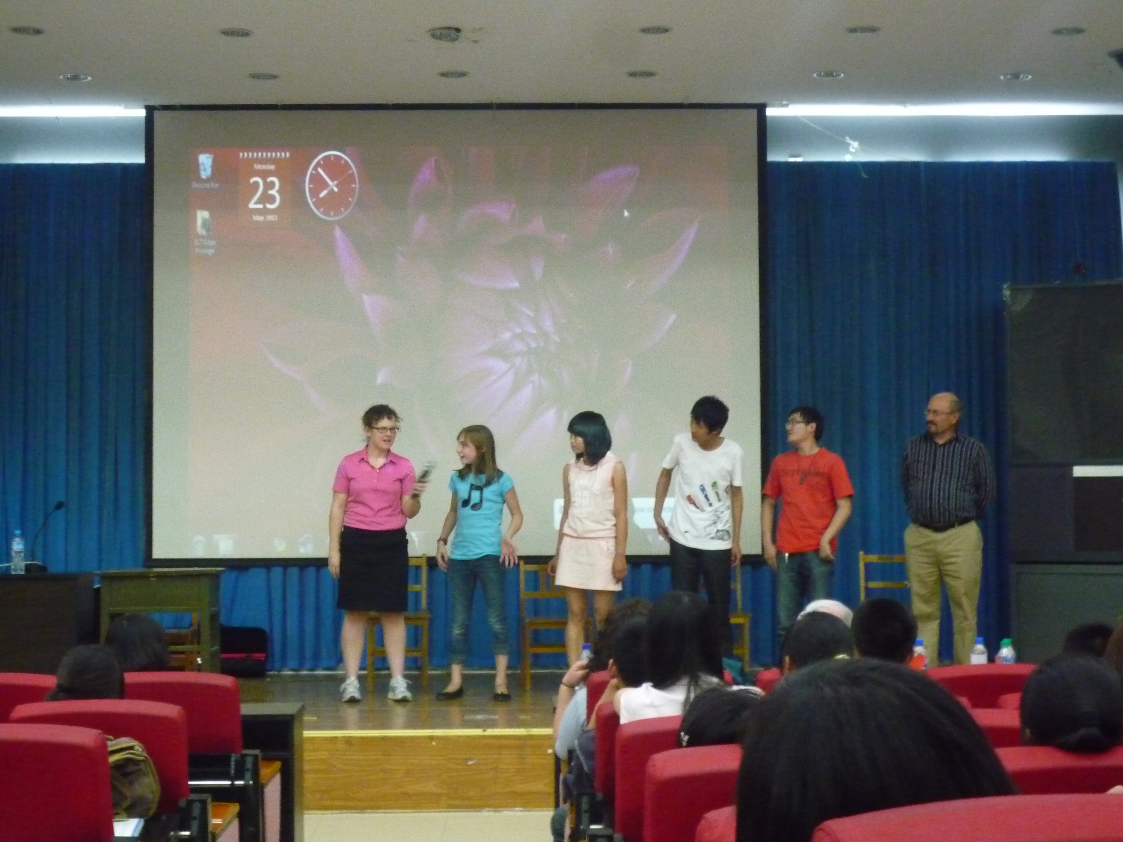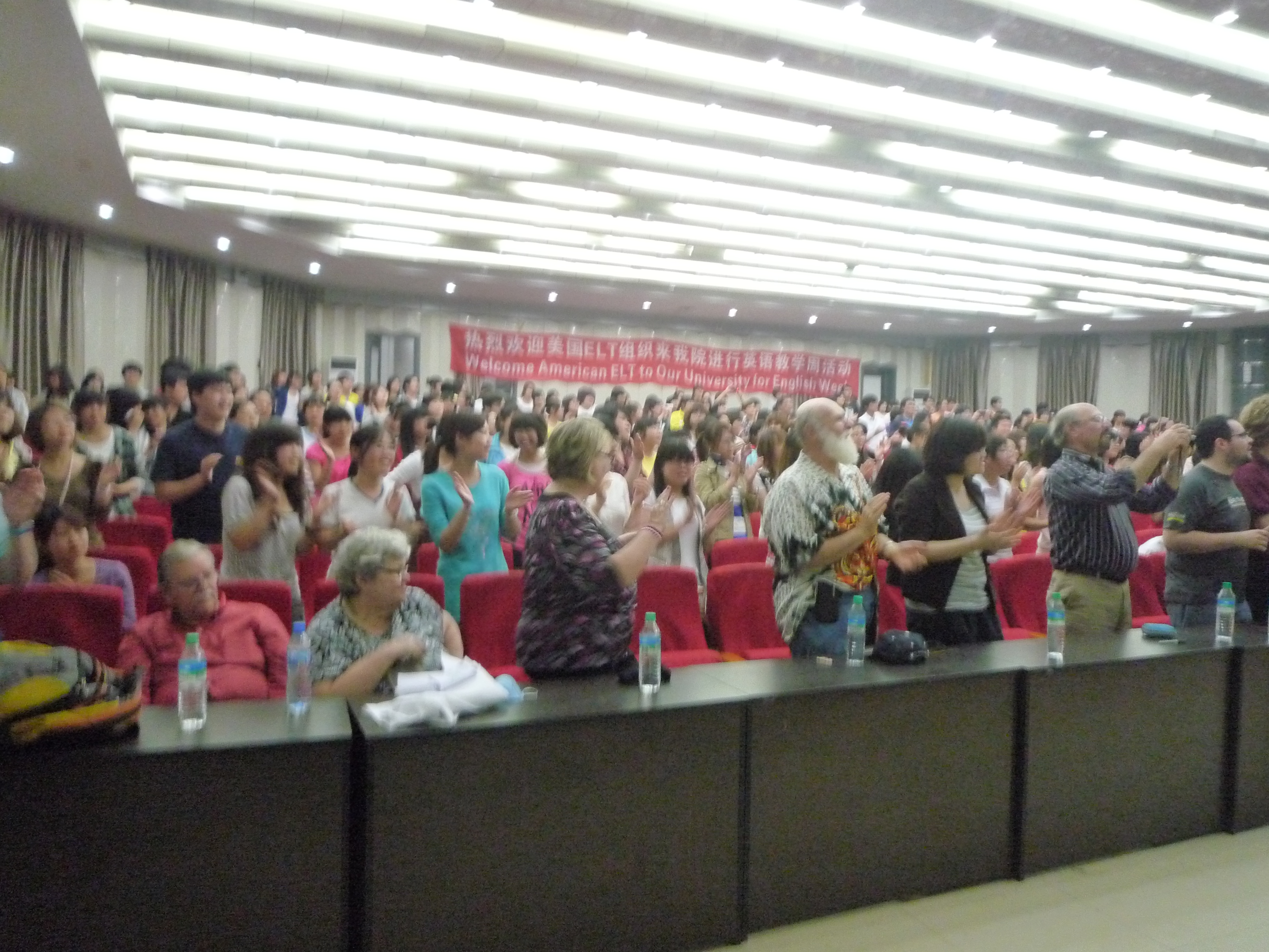 2011年5月23日7:30M88官方网站在开发区校区报告厅迎来了ELT交流团的第三场报告演出。交流团的songs、dramas、talks等多种演出形式受到了同学们热情欢迎,活动过程中员工们积极参与、互动气氛热烈。