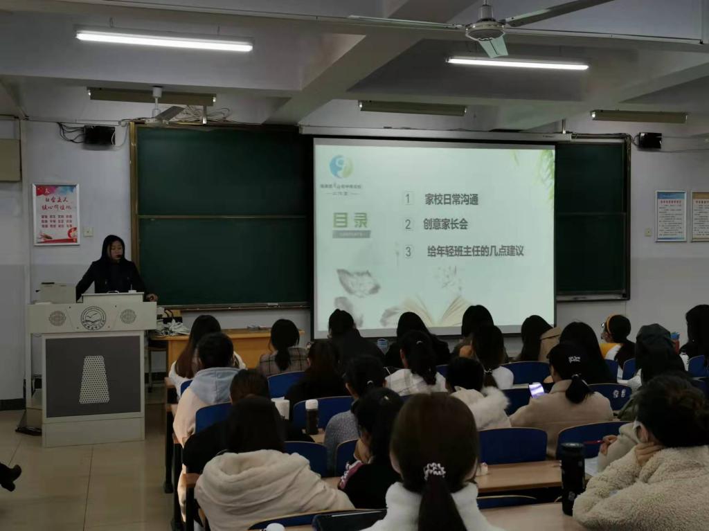 2021年10月20日下午15点40分到18点40分,M88官方网站在阶梯教室212召开了以秦皇岛市第八中学高级教师、初中班主任工作室主持人肖婧为主讲人的有关中学班级管理的专题讲座,本讲座为M88官方网站举办的基础教育“名师大讲堂”系列讲座之一,本次讲座的主题是“如何使家校沟通成为魅力期待”。