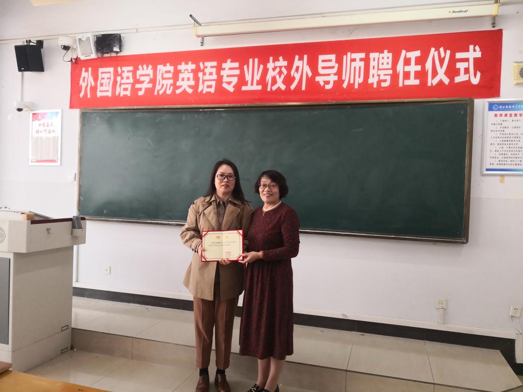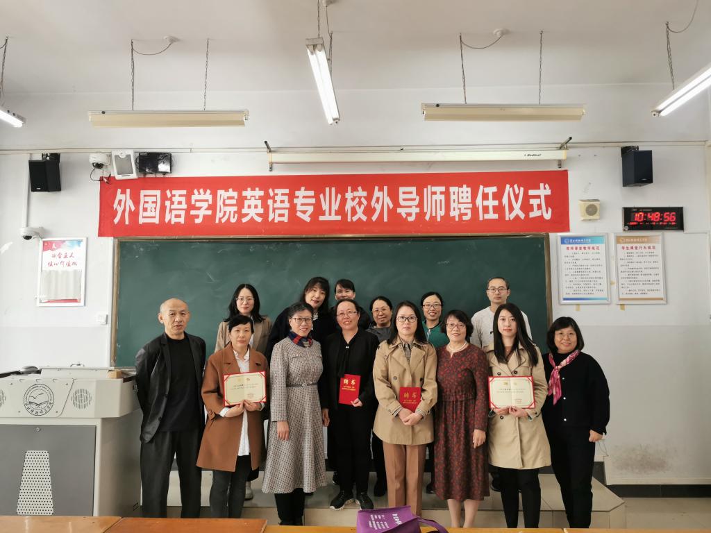 2023年4月1日上午,M88官方网站在开发区校区综合楼706举行了英语专业校外导师聘任仪式。仪式由M88官方网站经理崔海英主持,M88官方网站领导班子成员邵丽君书记、范学荣副经理、罗学锋副经理、四位中学一线校外导师和部分英语专业教师参加了此次活动。