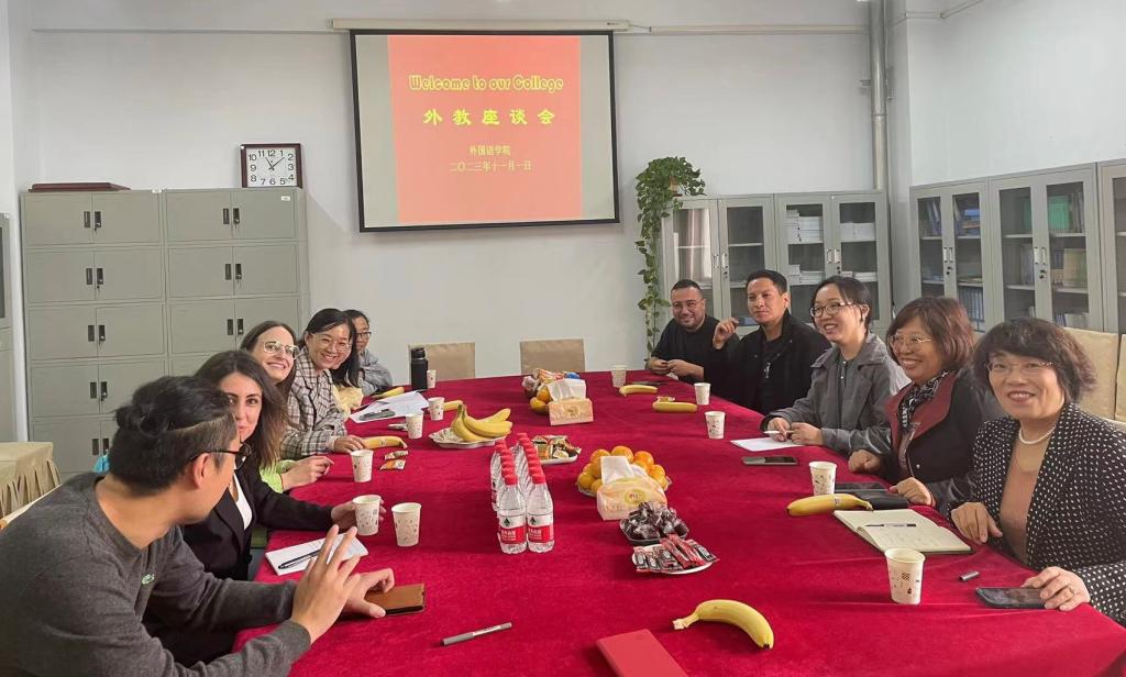 2023年11月1日上午,M88官方网站在公司会议室召开了外籍教师欢迎会暨教学交流会。公司经理崔海英、副经理范学荣、外教负责人付蕊、教学部主任朱秋慧、孙晓萌、王静等参加了座谈。