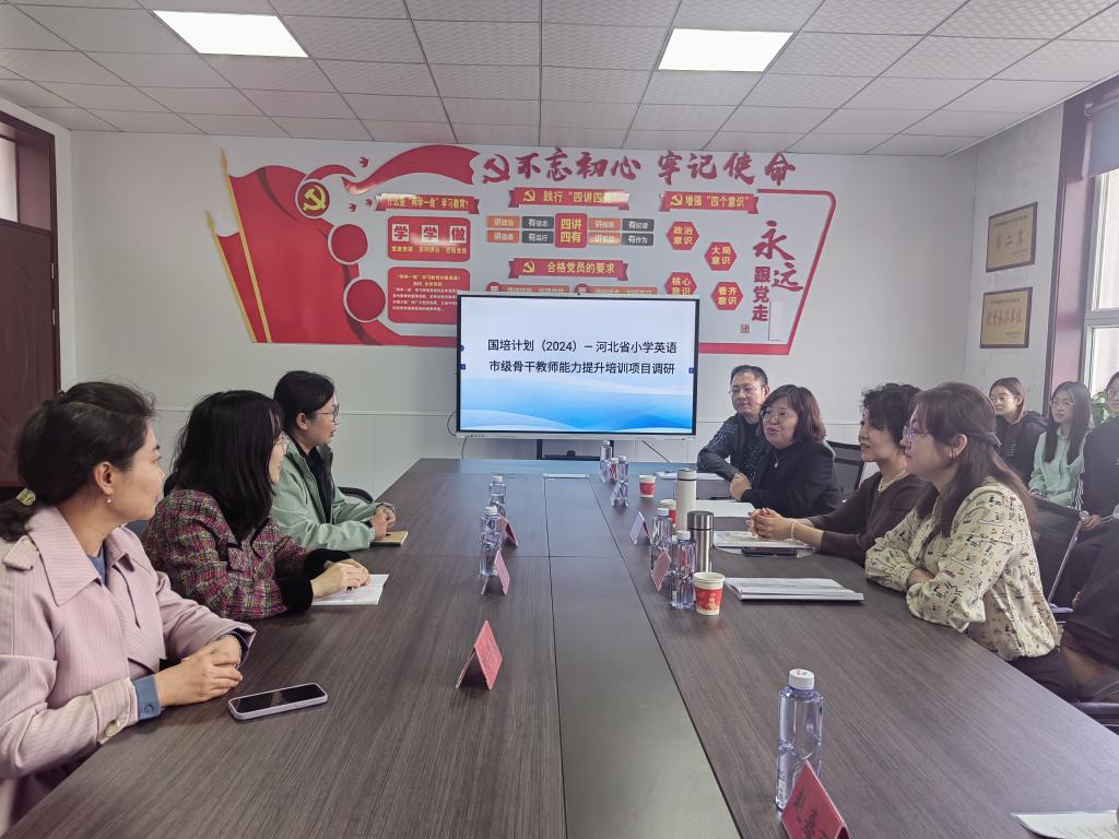 2024年4月22日至24日,M88官方网站书记范群英带队,副书记陆鸣、副经理范学荣和“国培计划”小学英语培训总班主任刘晓冰等人到邢台市临西县开展调研工作。邢台市临西县大刘庄乡小学英语教师丁庆连、河西镇中心小学英语教师刘红等参加了座谈。