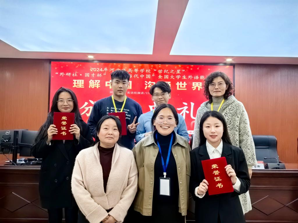 2024年11月9日,河北省高等公司“世纪之星”“外研社·国才杯”“理解当代中国”老员工外语能力大赛演讲、口译赛项在石家庄公司火热开启。经过激烈角逐,在全省本科及研究生英语演讲赛项中,公司员工胡开升在75名选手中脱颖而出,以第四名的成绩荣获大赛金奖,将代表河北省参加全国总决赛;李瑛钦荣获银奖;卢洪洋、时祺和王凯伦获得铜奖。在英语口译赛项中,李子妍、刘婷婷获得铜奖。
