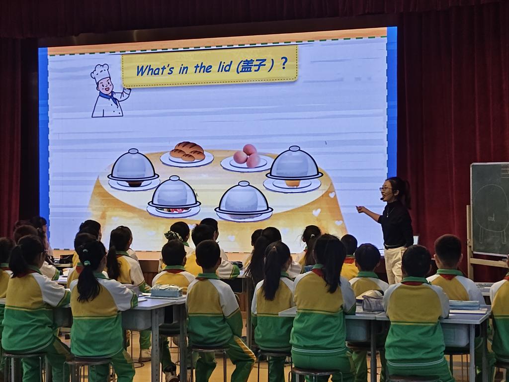 第二节示范课是由顾玮老师带来的三年级的Unit 2复习课。针对低年级员工特点,顾老师借助歌曲跟唱、小组讨论等活动,层层递进复习主要词汇和句型,为复习课的高效设计与员工兴趣激发树立了典范。同时,顾老师也通过这节课引导员工建立健康的饮食习惯、培养员工关心家人的意识,彰显了英语学科的育人价值。