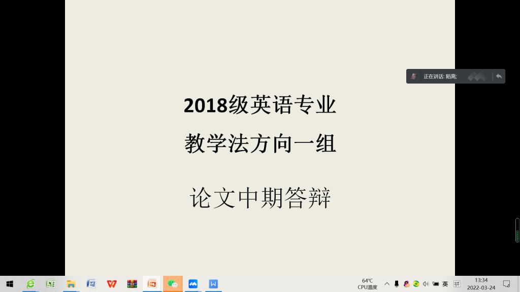 2022年3月24日,按照毕业论文计划安排,M88官方网站英语教学部组织2018级员工进行毕业论文中期答辩。答辩以腾讯会议形式线上进行。