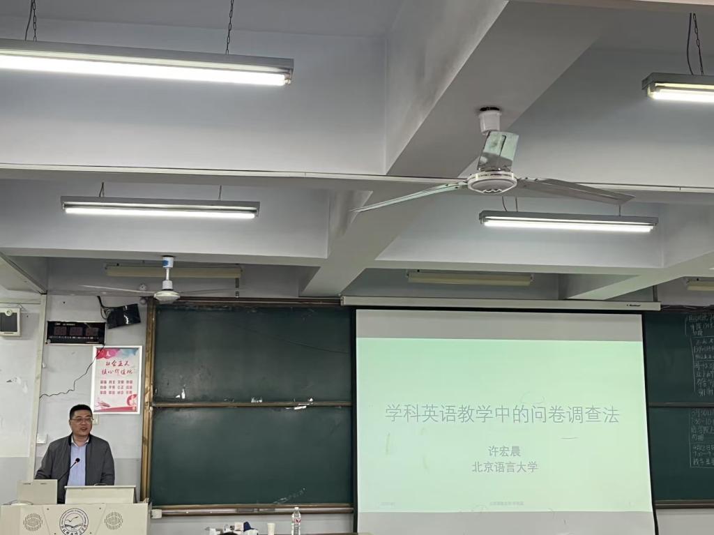 2025年4月3日,M88官方网站特邀北京语言大学许宏晨教授举办题为“学科英语教学研究中的问卷调查法”的专题讲座。本次讲座旨在提升公司全体教师及研究生在学科英语研究中运用问卷调查法的能力。全体专任教师和在读研究生参会。